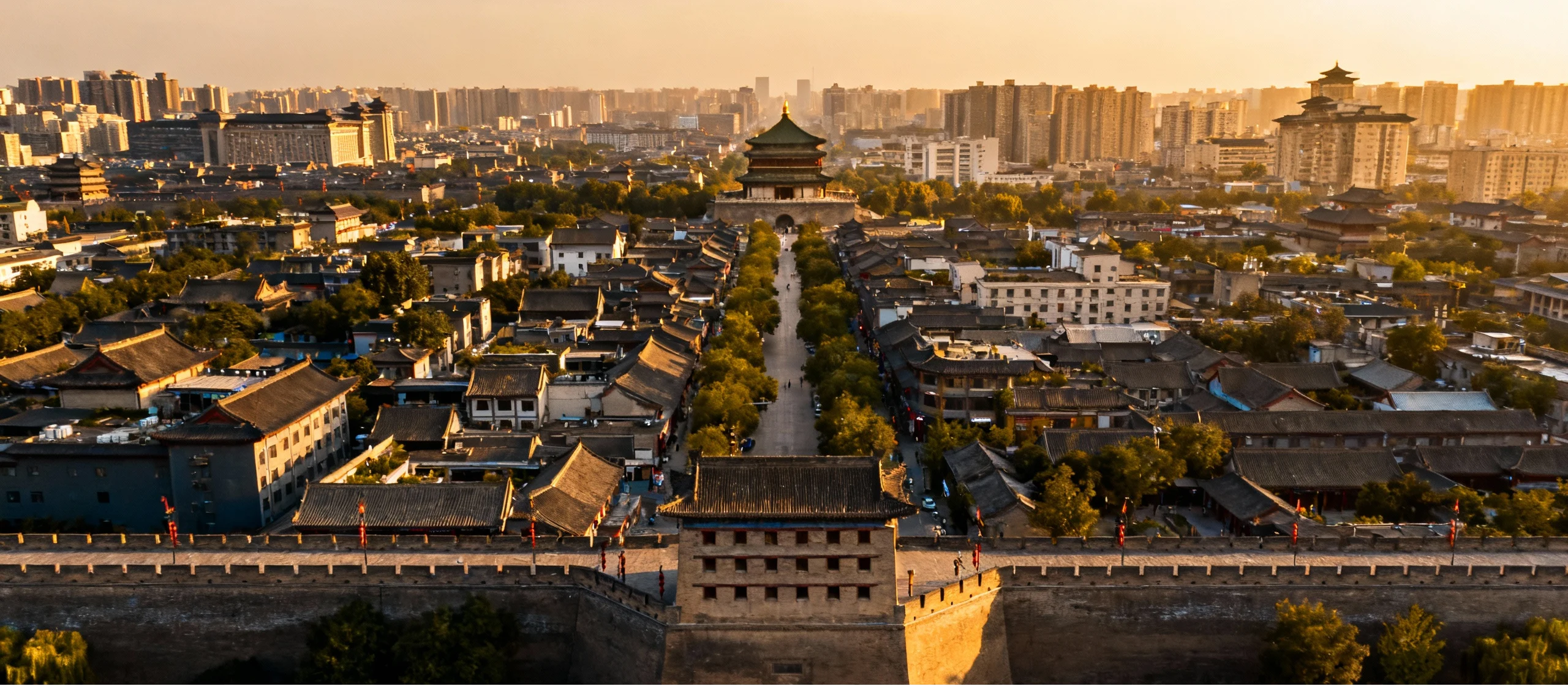 Afternoon Return to the city center to visit the Xi’an City Wall. You may choose to walk or cycle along a section of the wall. From the ramparts, enjoy a bird’s-eye view of the ancient capital’s central axis, with distant views of the Drum Tower and the urban silhouette of the Muslim Quarter.