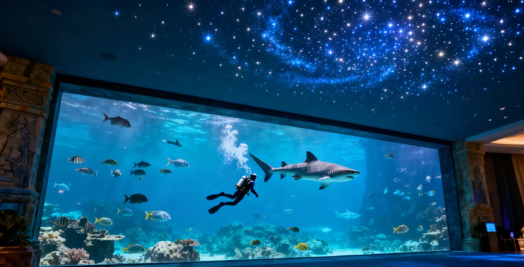 Early in the morning, go to the Atlantis Sanya Resort. With fewer visitors at this time, first explore The Lost Chambers Aquarium, where you can see 86,000 marine creatures and watch divers and sharks “dance” together in the Ambassador Lagoon, feeling the magic of the underwater world.
