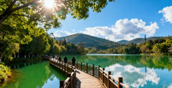 Afternoon: Have lunch at a vegetarian restaurant near the workshop, enjoying the snacks you made yourself paired with local tea. Then visit Mile Lake Spring Eco-Park for a walk, enjoying the lakes and mountains. Optional activities include a boat ride or relaxing at a lakeside café. Later, head to a local intangible-heritage tie-dye workshop to learn tie-dye skills and pick unique handmade items as souvenirs.