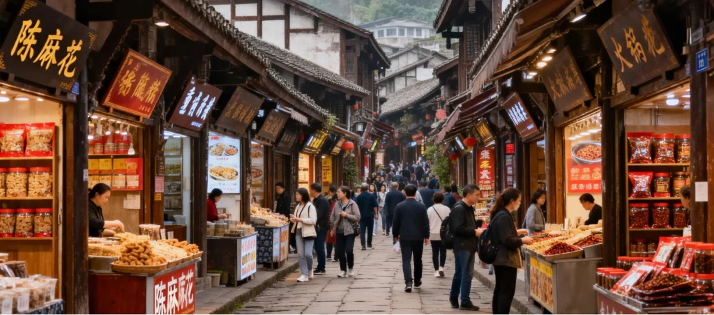 Explore Ciqikou Ancient Town, known for traditional snacks and bustling alleys
