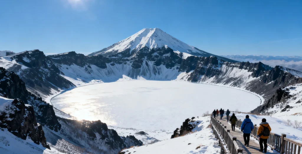At 6:30 in the morning, wait on the eastern slope of Xueyun Street for the Snow Town sunrise, photographing the healing scene of the snowfield sunrise framed with “snow mushrooms”; afterwards, charter a car from Snow Town to Erdaobaihe Town at Changbai Mountain, passing Jingpo Lake, getting off to photograph the winter-frozen alpine barrier lake, whose snow-covered surface looks like a white wilderness. In the afternoon, arrive in Erdaobaihe Town, check into a Blueberry Valley guesthouse, rest for 1 hour and then go to the hot springs (recommend Lanjing Hot Spring), choose an outdoor pool to experience the comfort of “your head on white snow, your body in warm water”; the mineral-rich hot-spring water relieves travel fatigue. In the evening, find a Korean-style restaurant in Erdaobaihe Town, order bibimbap in a stone pot, spicy rice cakes, army hotpot, paired with chilled rice wine; after dinner, stroll along the town’s main street, see the reflection of snow under the streetlights, and feel the tranquil night at the foot of Changbai Mountain.