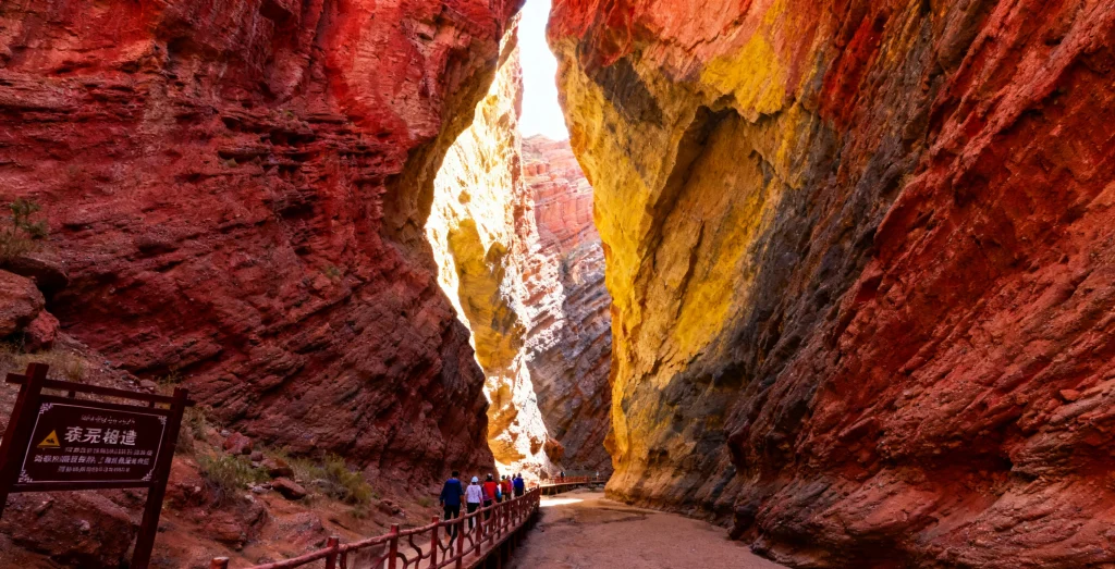 In the afternoon, go to the Tianshan Mysterious Grand Canyon, where red rock walls and white snow combine into a rare landscape. Hike along the canyon trail and feel both the towering cliffs and the purity of the ice and snow. Check in at the canyon’s “One-Line-Sky” section, where sunlight pours through the narrow crevice to form beams of light on the snow.