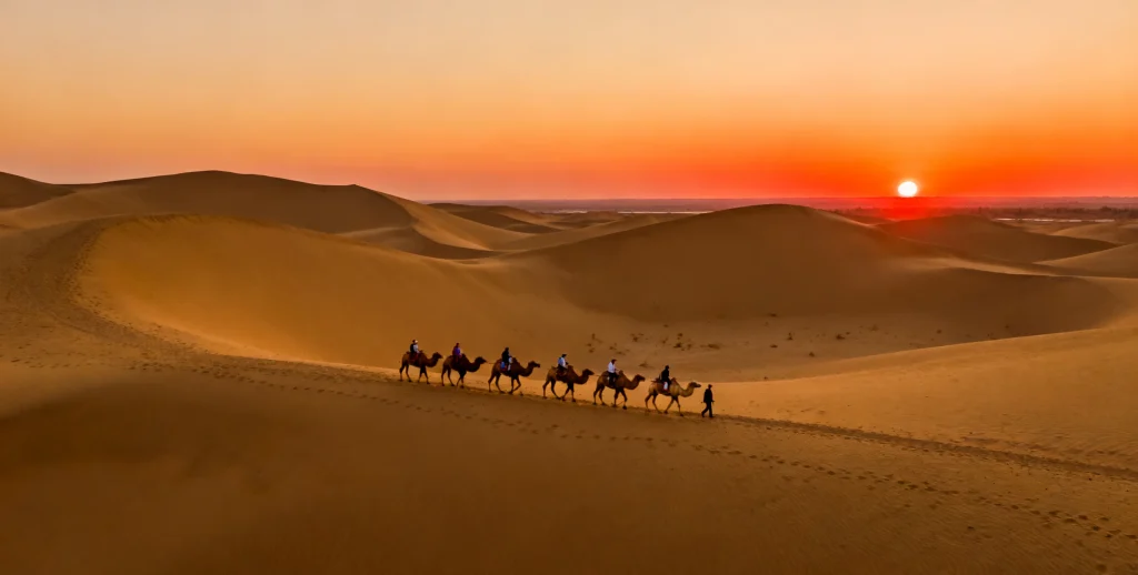 In the afternoon, go to the edge of the Taklamakan Desert to experience snow-covered desert trekking. Walk on dunes dusted with thin layers of snow and watch the light and shadow on the sand change with the sun. With a professional guide, try sand sledding down the dunes.