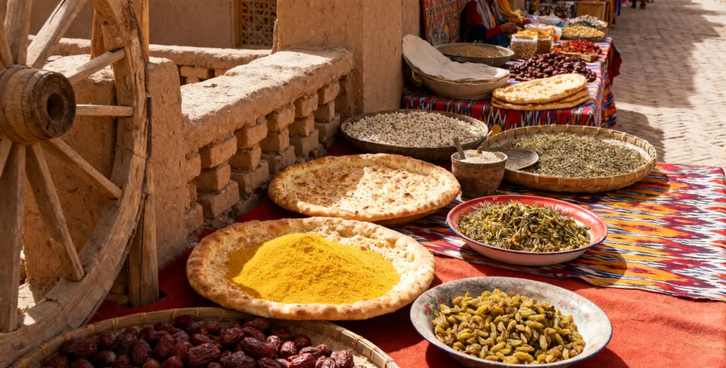 In the evening, have dinner at the Hotan night market, where baked eggs, roast pigeon, and handmade yogurt are recommended. Afterward, visit nearby atlas silk shops, where you can see colorful hand-dyed and handwoven silk and buy a scarf as a gift.