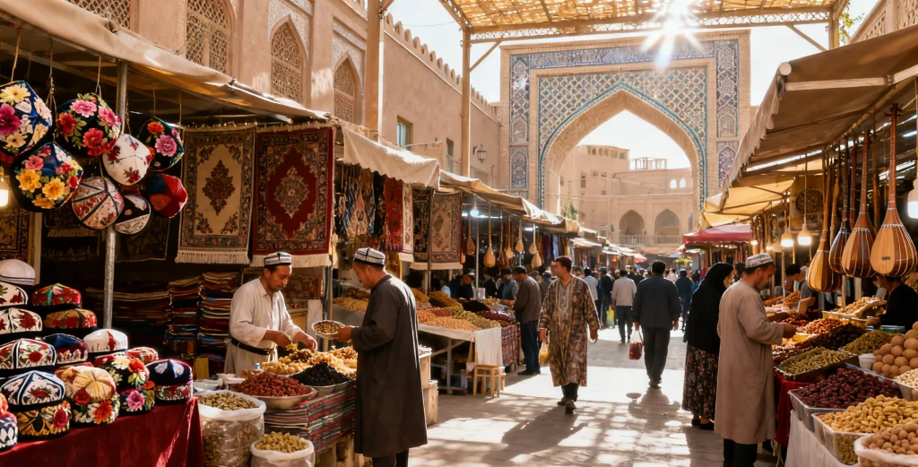 In the evening, visit the famous Kashgar Grand Bazaar. Soak up the lively Silk Road market atmosphere and browse a variety of ethnic handicrafts and specialty products.